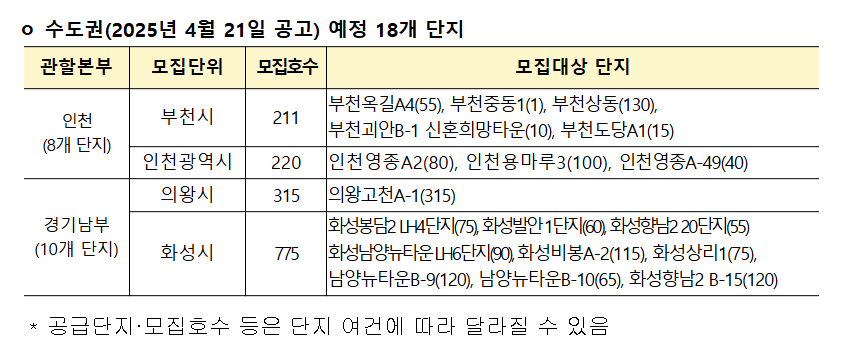 자세한 사항은 LH청약플러스(apply.lh.or.kr)에 게시된 단지별 공고문을 통해 확인할 수 있으며, LH콜센터(1600-1004)를 통한 전화상담도 가능합니다.